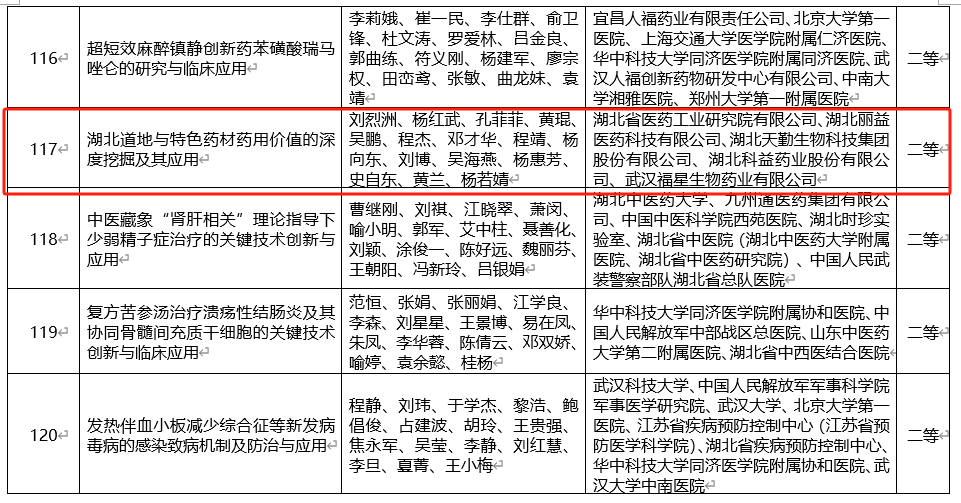 近期,2025年度湖北省科学技术进步奖名单公示,由天勤生物联合湖北省医药工业研究院有限公司、湖北丽益医药科技有限公司、湖北科益药业股份有限公司、武汉福星生物药业有限公司共同完成的“湖北道地与特色药材药用价值的深度挖掘及其应用”项目,荣获二等奖。这一成果标志着湖北省在道地药材资源开发利用与中医药现代化研究方面取得重要进展。